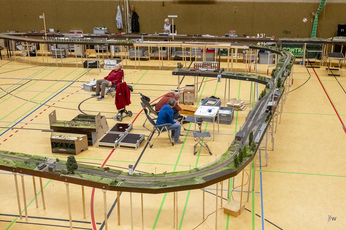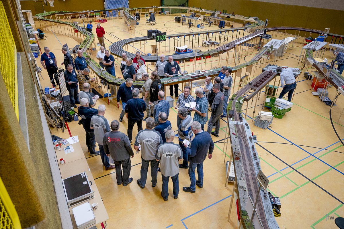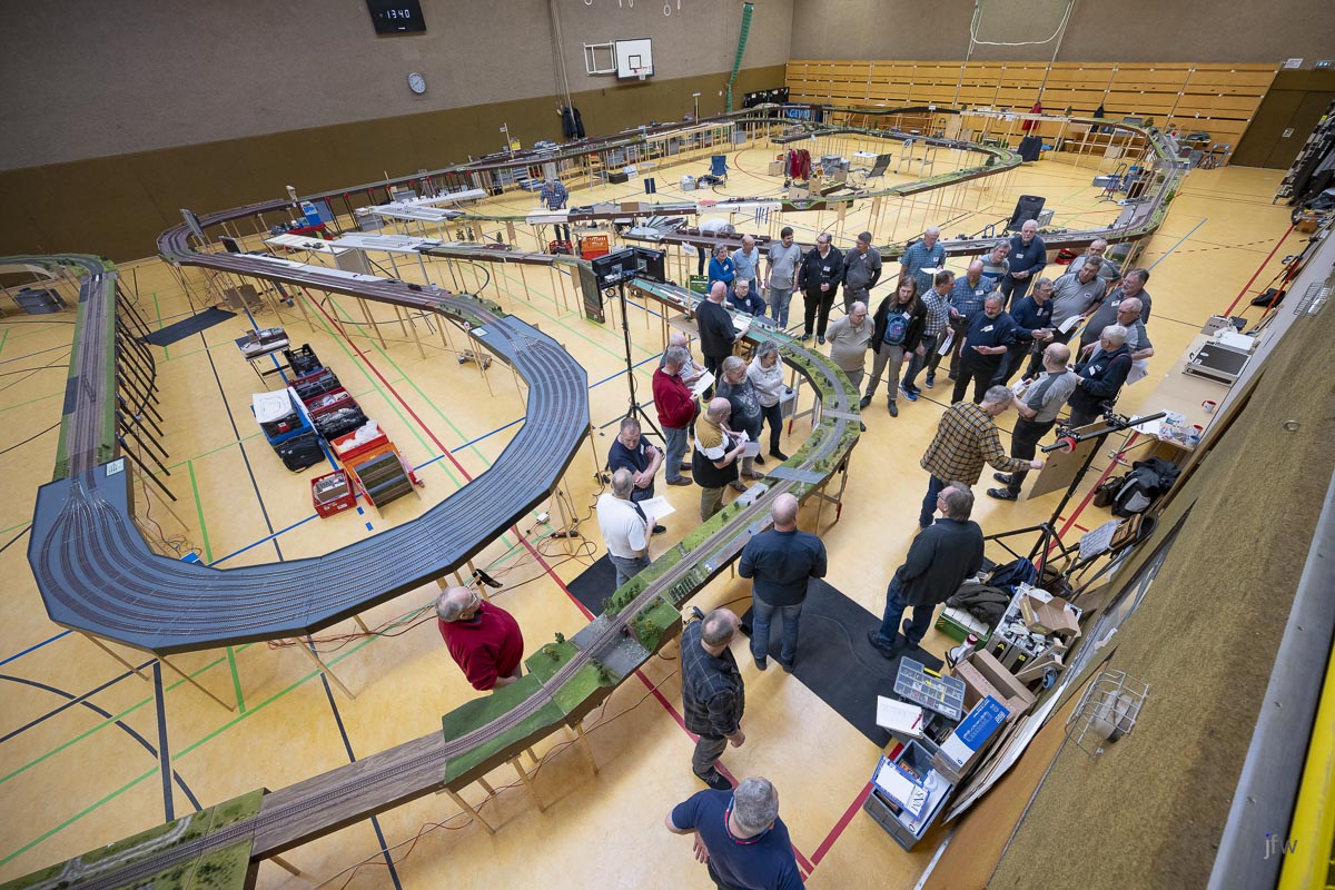 Im Februar konnten wir endlich wieder die Halle in Kisdorf benutzen und der NBK hat sogleich ein großes Fahrtreffen organisiert, an dem nicht nur der EFKR, sondern auch weitere Freunde der Spur0 teilgenommen haben. Wir waren über vierzig Leute und konnten eine Gesamtstreckenlänge von über 214m befahren. Beeindruckend.