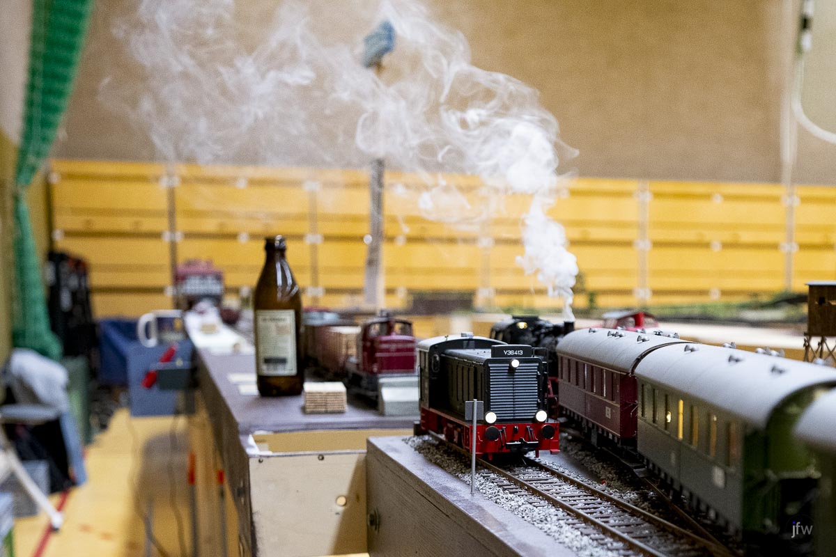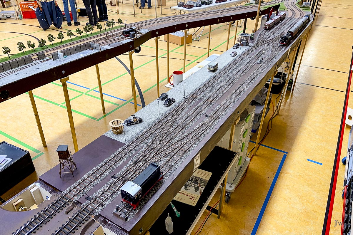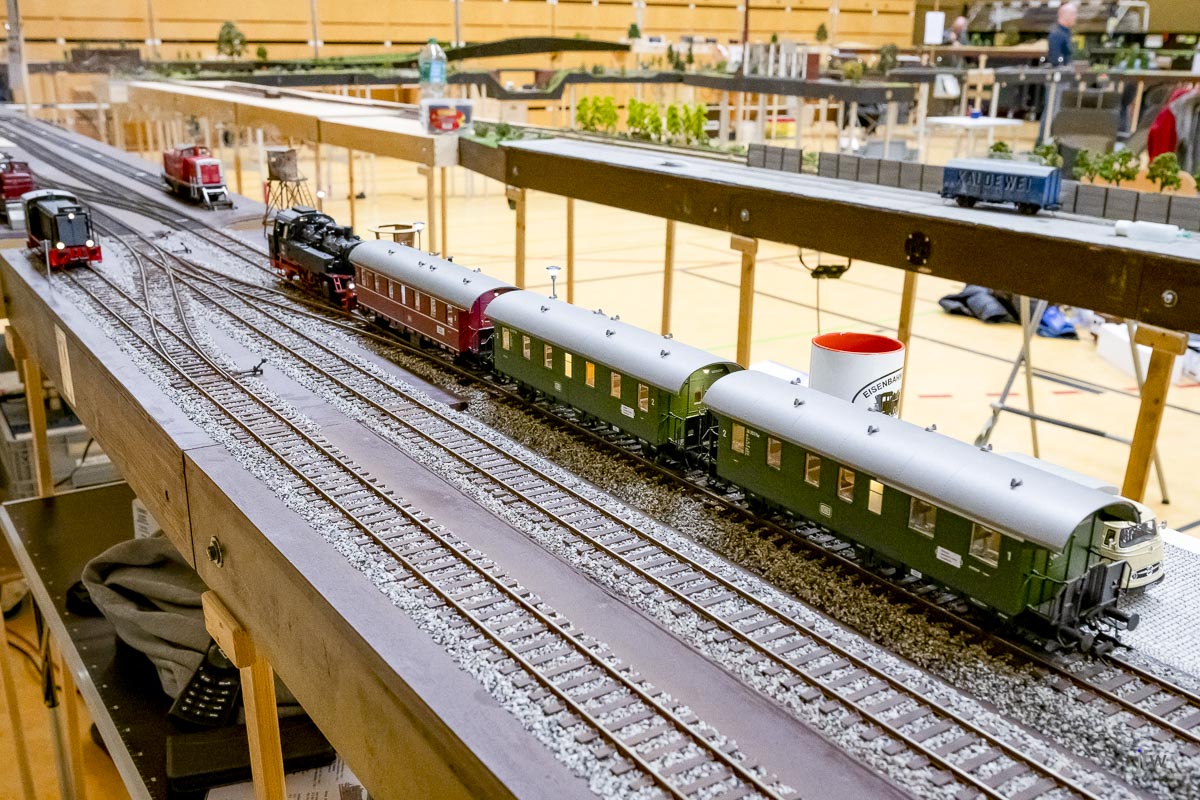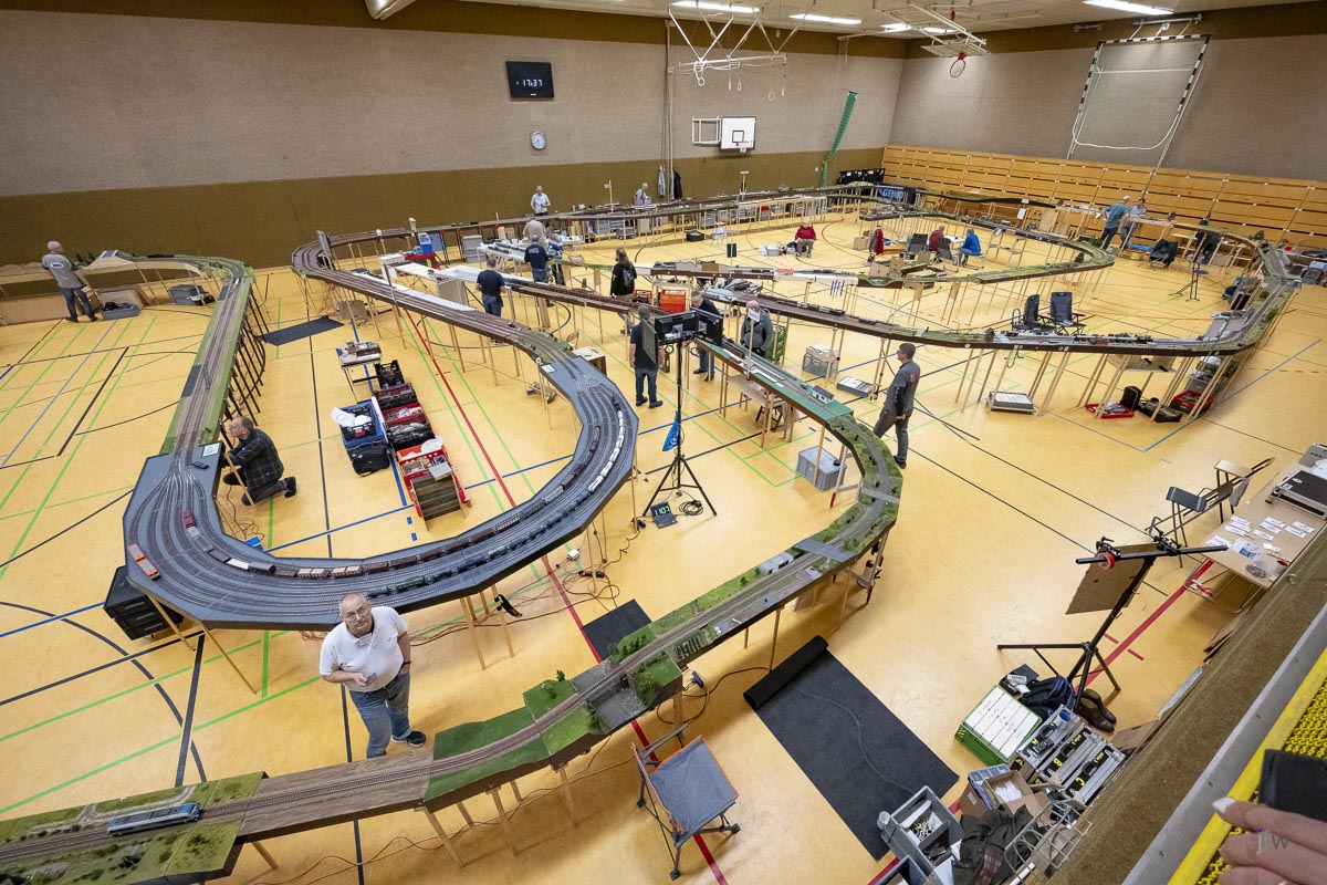 Im Februar konnten wir endlich wieder die Halle in Kisdorf benutzen und der NBK hat sogleich ein großes Fahrtreffen organisiert, an dem nicht nur der EFKR, sondern auch weitere Freunde der Spur0 teilgenommen haben. Wir waren über vierzig Leute und konnten eine Gesamtstreckenlänge von über 214m befahren. Beeindruckend.