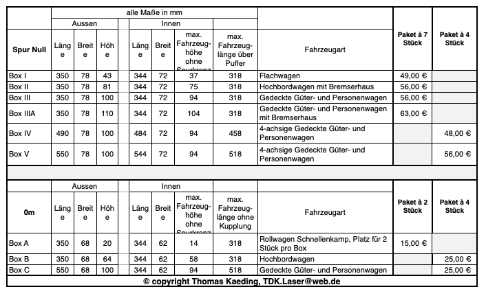 Siehe auch unseren ausführlichen Beitrag im Menü Sonstiges / Wagentransportboxen